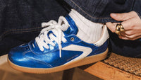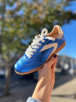 We love this blue metallic leather sneaker so much. It's the perfect sneaker to transition into Autumn, let's start Autumn with a bang on our feet and start as we mean to go on.