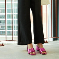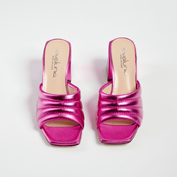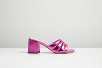 Stand out at any special occasion with Ibiza Metallic Pink block heel mules. Crafted with soft Italian leather, these heels provide comfortable support and stability. With their 6cm block heel, these shoes will give you a boost of confidence at any event.