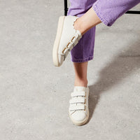 We love the scallop edged detailing and the super soft off-white leather. These look beautiful on the foot, such a gorgeous feminine touch on on classic velcro sneaker.