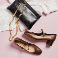 She is the cutest style with a block heel - 4.5cm. Wear with jeans for a paired down look or dress up with tights and a skirt/dress.
