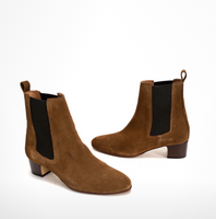 We love the Niabella chelsea silhouette with elegant yet practical heel. She's gorgeous in the cinnamon brown suede leather, perfect to dress up a classic outfit. Pair with a soft cream blouse and jeans for effortless style.