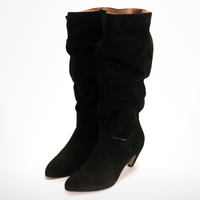 We love the 5cm heel with the ruched suede leather. Gorgeous with season's culottes, long bermudas, long dresses and with jean tucked in.