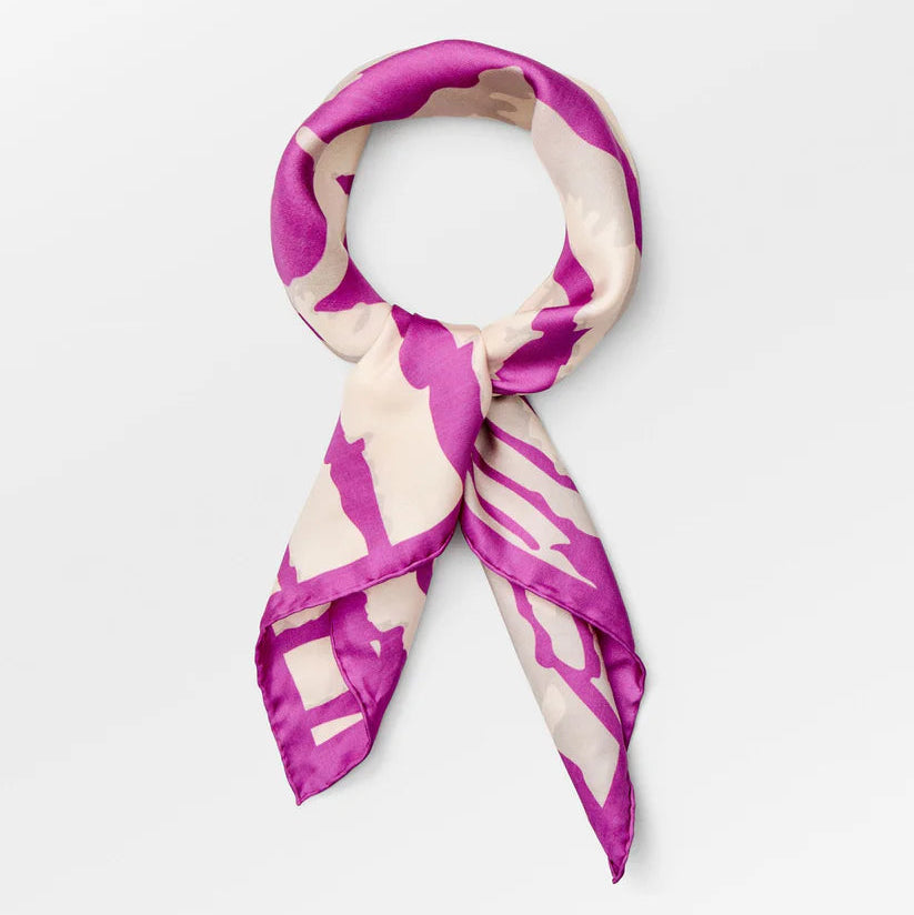 The Grafina Sia Scarf from Becksöndergaard is crafted from 100% silk, offering quality and softness. Measuring 65x65 cm, this scarf is perfectly sized for versatile styling. The scarf features a unique striped pattern, with curved, rounded lines that give it a modern and dynamic look. Wear it around your neck, in your hair, through your belt loop, or as a decorative accessory on your bag. With endless styling possibilities, the scarf adds a touch of elegance and creativity to any outfit.