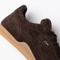 - The toe and tongue, which features a D.A.T.E. etched lettering, come in brown suede leather.