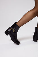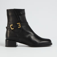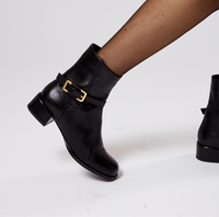 She's a sleek, versatile essential that seamlessly blends luxury and style. Crafted from fine Italian leather, this ankle boot features a chic gold buckle detail at the ankle, adding a touch of elegance to its streamlined design. Perfect for day-to-night transitions, Marie is an effortlessly stylish choice for any occasion and is also available in rich brown suede.