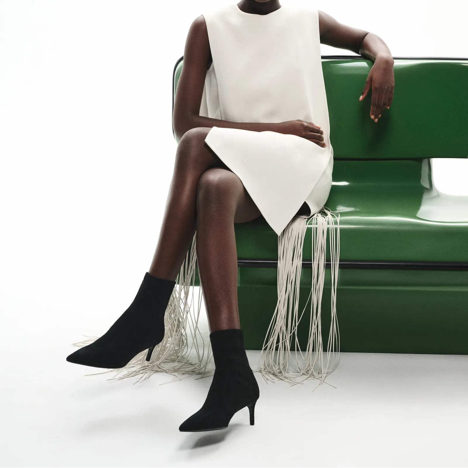 We love this season's little heel, if there was ever a year to style it out it's 2025. We love the elegant simplicity of the Ophelia boot. Clean lines and ankle hugging soft kid suede and stretchy elastic. They're perfect for upping your style game in the most comfortable way.