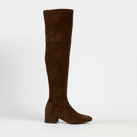 The over-the-knee boot features a form-fitting elastic suede material, a low heel, and impeccable craftsmanship. It is renowned for its ability to stay in place, making it the epitome of effortless elegance.