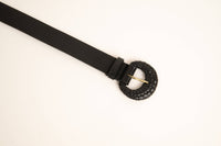 Designed as a strong accessory, this belt refines the silhouette with sophistication. Its black leather styles everyday outfits as well as more formal looks, while catering to a wide clientele seeking a distinctive and versatile piece.