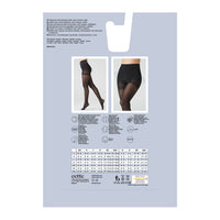 Seattle 30 denier tights with shaping pantie top (slims down buttocks, tummy and thighs) double covered Lycra®, cotton gusset, reinforced toes, flat seams.