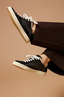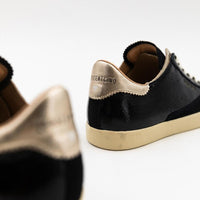 When we discovered the SC06 trainer for the first time we loved the feminine simple lines of this trainer. If you aren't into chunky trainers but want a trainer that's chic and elegant then this is your style. With its deep black patent leather and metallic gold detailing at the back it's ideal for work and winter commutes. Ideal for completing a chic look, it blends elegantly with a dressy outfit and on the weekend works with denim too.